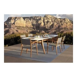 - Very nice table mixing natural teak and ceramics from Royal Botania, with very pleasant proportions with a width of 1.20 m out of the ordinary!