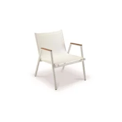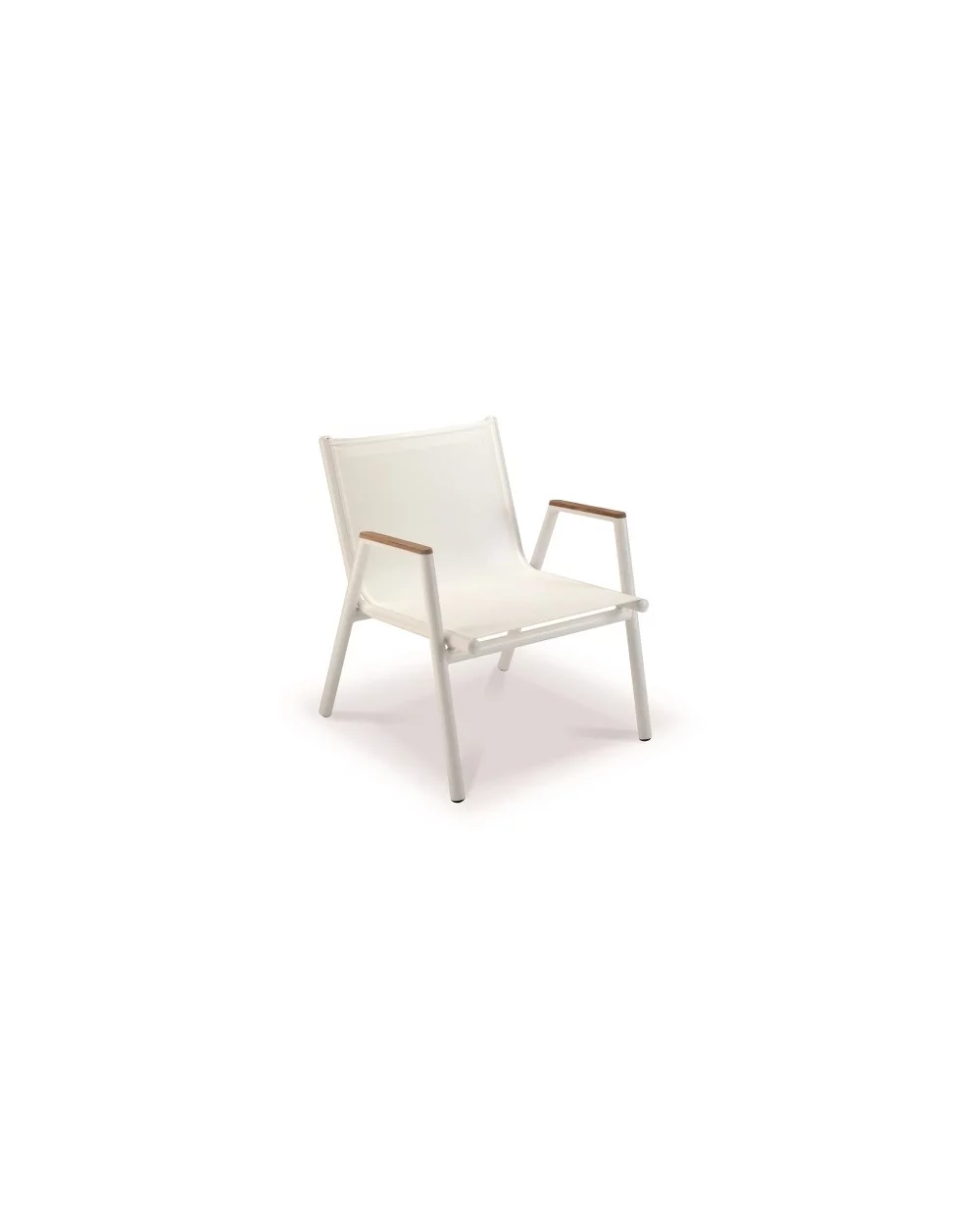 Low armchair (lounge) canvas BATYLINE EDEN STILTS from VLAEMYNCK, white lacquered aluminum structure.
