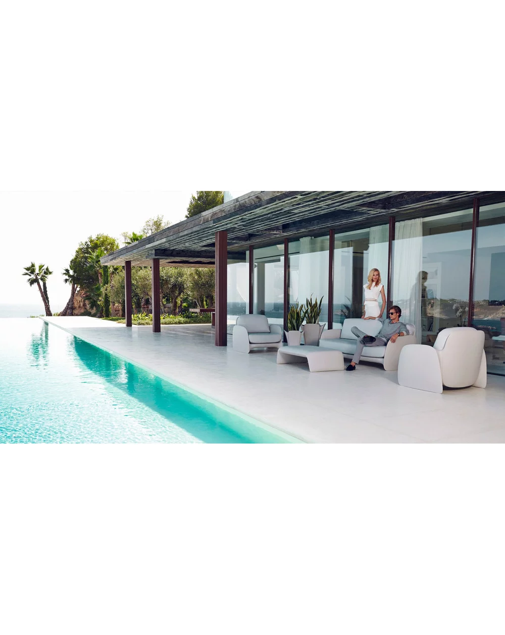 Cushions included in Nautic fabric (100% imitation leather for outdoor use) or Silvertex fabric (vinyl fabric for outdoor use) depending on the structural colors.