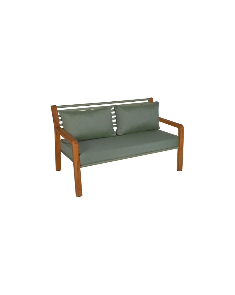 Le sofa en bois et aluminium vous apportera un confort optimal grâce au degré d’inclinaison du dossier et à la profondeur de l’assise qui ont été étudiés avec le plus grand soin et qui sont agrémentés de coussins déhoussables en tissu outdoor Sunbrella®