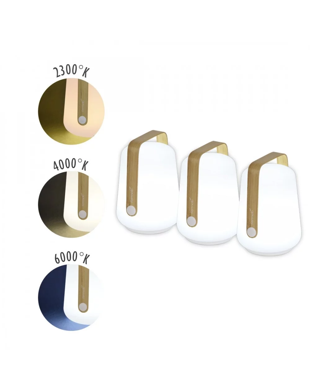 Lampe Balad en version mini.Légères et mobiles les 3 lampes sans fil proposent trois scénarios d'éclairage différents. La poignée en bois naturel lui donne un look tendance.