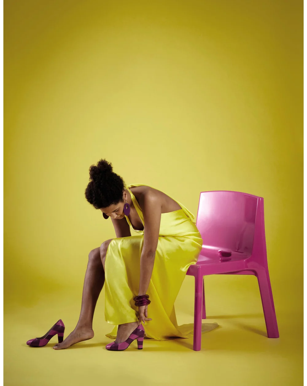 Dépourvue d'accoudoirs, elle est caractérisée par un côté pratique et une solidité formelle.