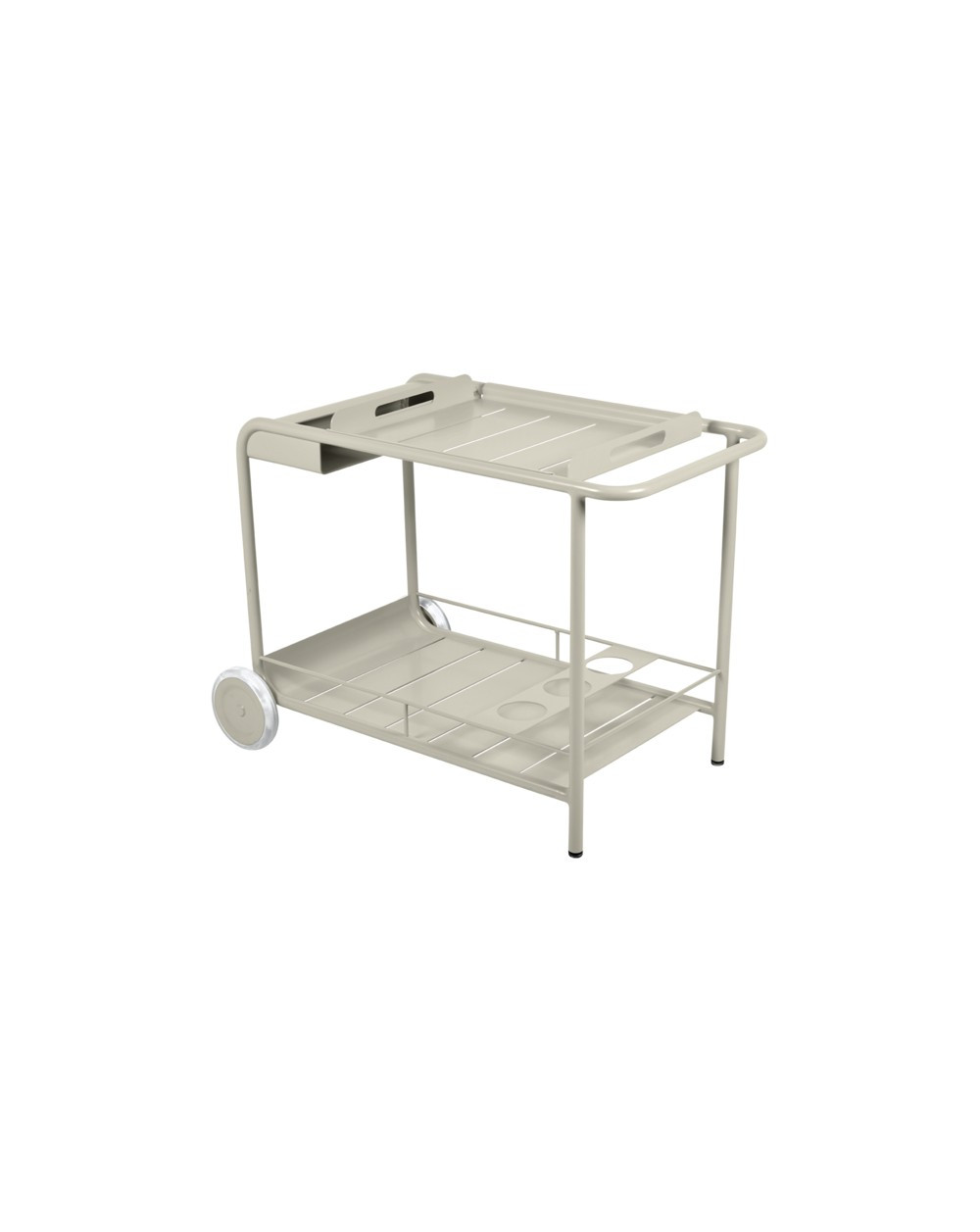 Entièrement réalisée en aluminium, cette desserte roulante résiste aux conditions extérieures, même les plus rudes, et se déplace facilement. Elle trouve évidemment particulièrement bien sa place lorsqu'elle accompagne un ensemble table et chaises Luxembourg : astucieux rappels déclinables en une multitude de couleurs.