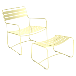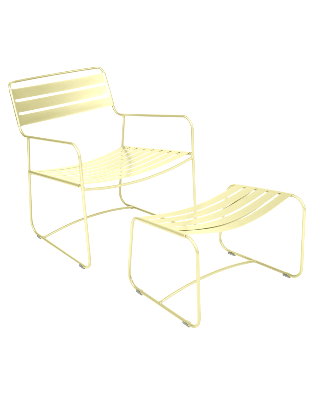 Avec Suprising lounger, Harald Guggenbichler et Fermob réinterprètent le fauteuil club dans une version filiforme, pleine d’élégance! Grâce à la souplesse de l’acier et à un véritable souci ergonomique, ce combiné fauteuil bas et repose-pied présente un confort qui n’a rien à envier à son lointain cousin british. Confortable, il est également astucieux, avec son repose pied qui se glisse sous le fauteuil en toute simplicité pour en optimiser le rangement.