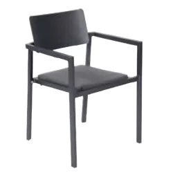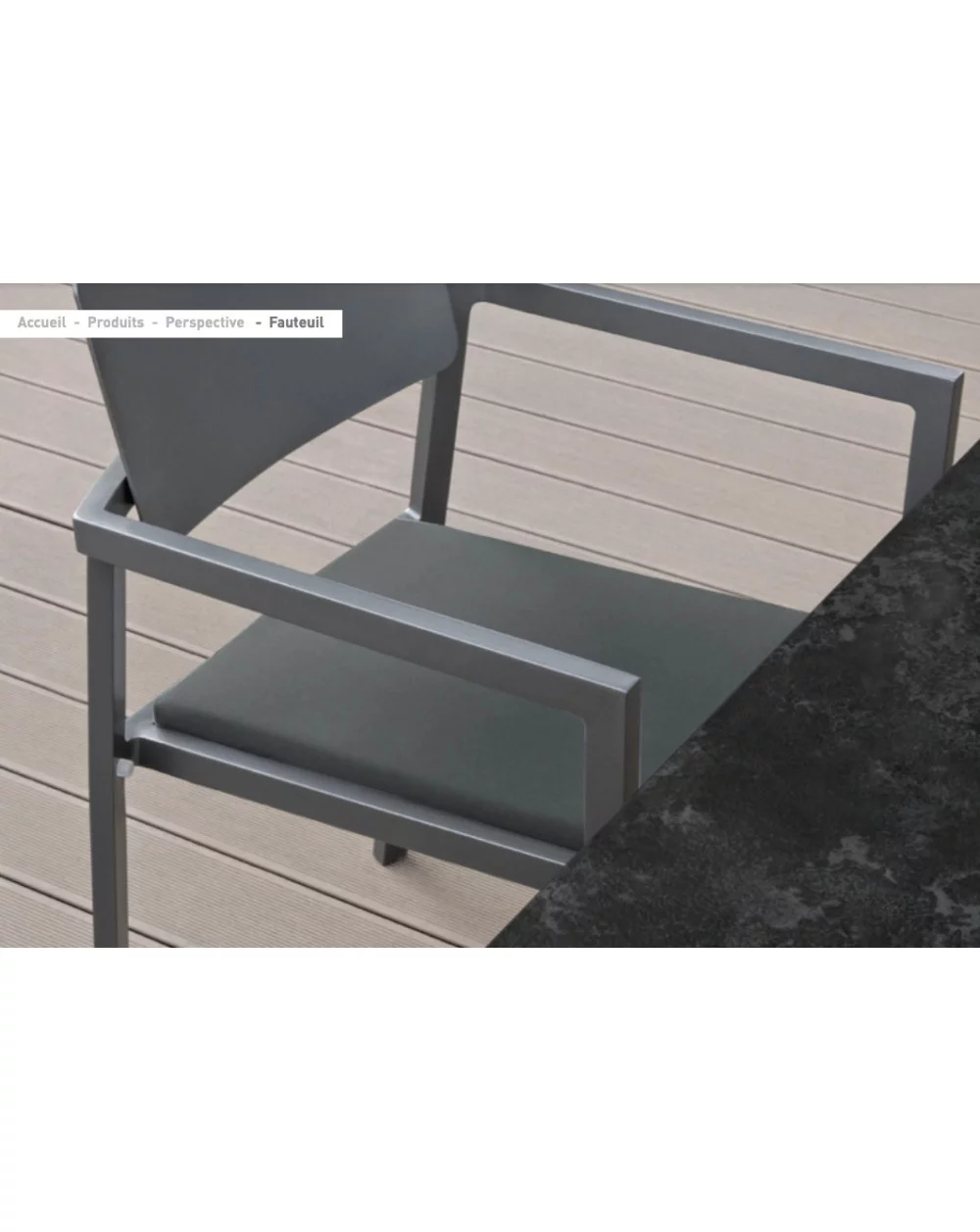 Fauteuil de repas PERSPECTIVE de chez Vlaemynck, structure en aluminium laqué.