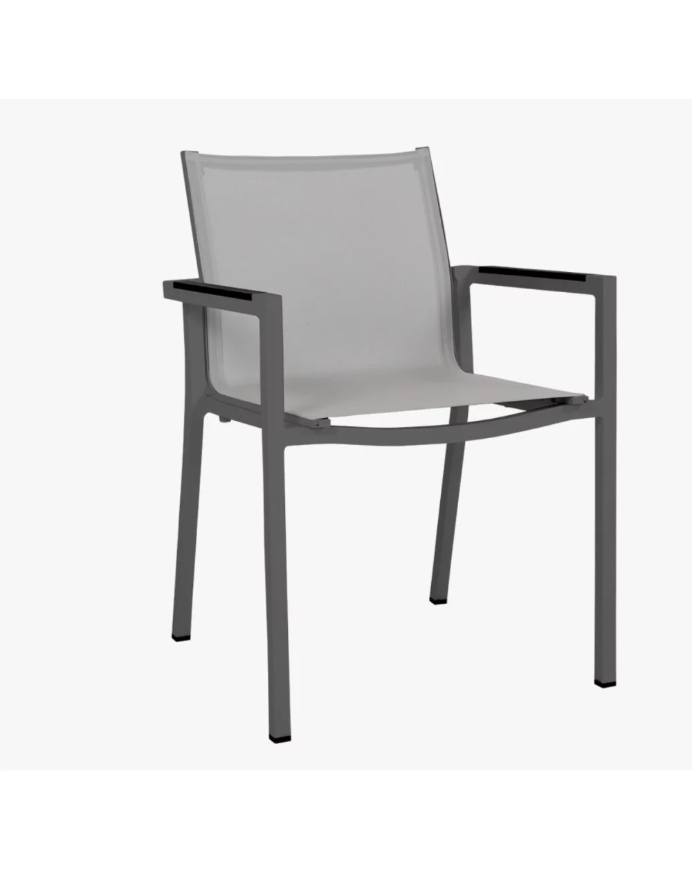 Fauteuils empilables AMAKA. Confortables, pratiques, légers ces assises peuvent s’adapter à toutes les tables de la collection AMAKA, mais plus généralement à n’importe quelle table Les Jardins. Des patins d’empilabilité permettent de ne pas abimer la structure lorsqu’on les empile. De plus la toile est thermosoudée à la structure ce qui lui confère une tenue dans le temps optimale