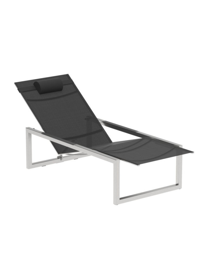 Structure en acier inoxydable et revêtement en batyline pour ce fauteuil aux lignes pures et contemporaines
