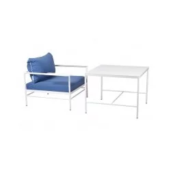 En complément des fauteuils, une table mi-hauteur originale dans cette hauteur là et conviviale pour des apéritifs dinatoires.