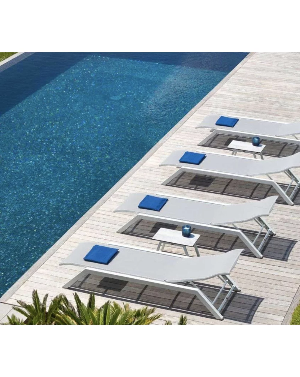 Découvrez le bain de soleil empilable avec des roulettes de la gamme Amaka de la marque Les Jardins.
